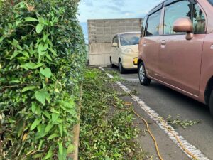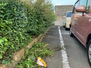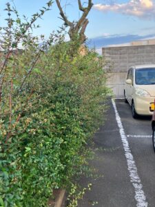 訪問車両への乗り降りに支障が出てくるため剪定することにします!
